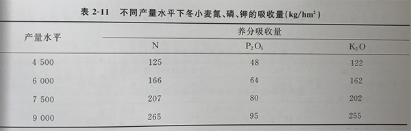 華北區(qū)域冬小麥為例,不同產(chǎn)量水平下對氮磷鉀的吸收量: