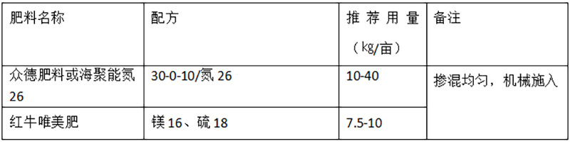 (2)推薦施肥套餐(根據(jù)目標(biāo)產(chǎn)量、地域、品種、地力等適當(dāng)調(diào)整)