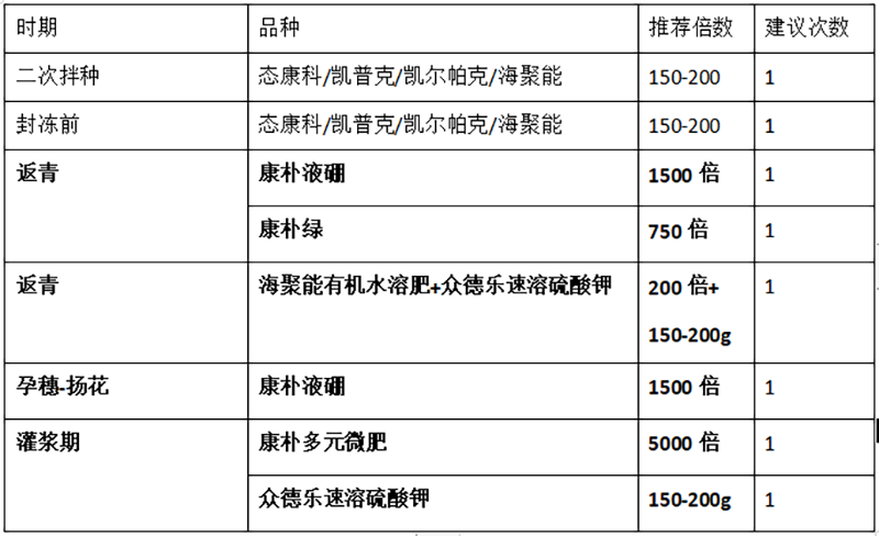 F、備注:眾德集團(tuán)科技服務(wù)中心專注作物高產(chǎn)高效栽培,由于集團(tuán)產(chǎn)品較多,國產(chǎn)進(jìn)口皆有,不同區(qū)域有不同的成熟產(chǎn)品套餐組合推薦,詳咨詢電話0535-6857828轉(zhuǎn)各作物經(jīng)理。