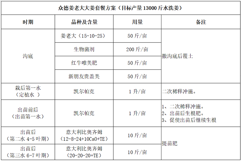 ?。?)緩控釋肥為主:大姜生長(zhǎng)周期長(zhǎng),澆水次數(shù)多,流失多,應(yīng)以緩控釋肥為主。